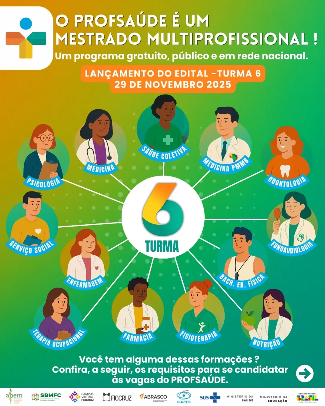 O Mestrado Profissional em Saúde da Família (ProfSaúde) divulgou o lançamento do edital para a sexta turma do programa. A oportunidade engloba profissionais com formação em Enfermagem, Medicina, Medicina (PMMB), Nutrição, Psicologia, Fisioterapia, ...