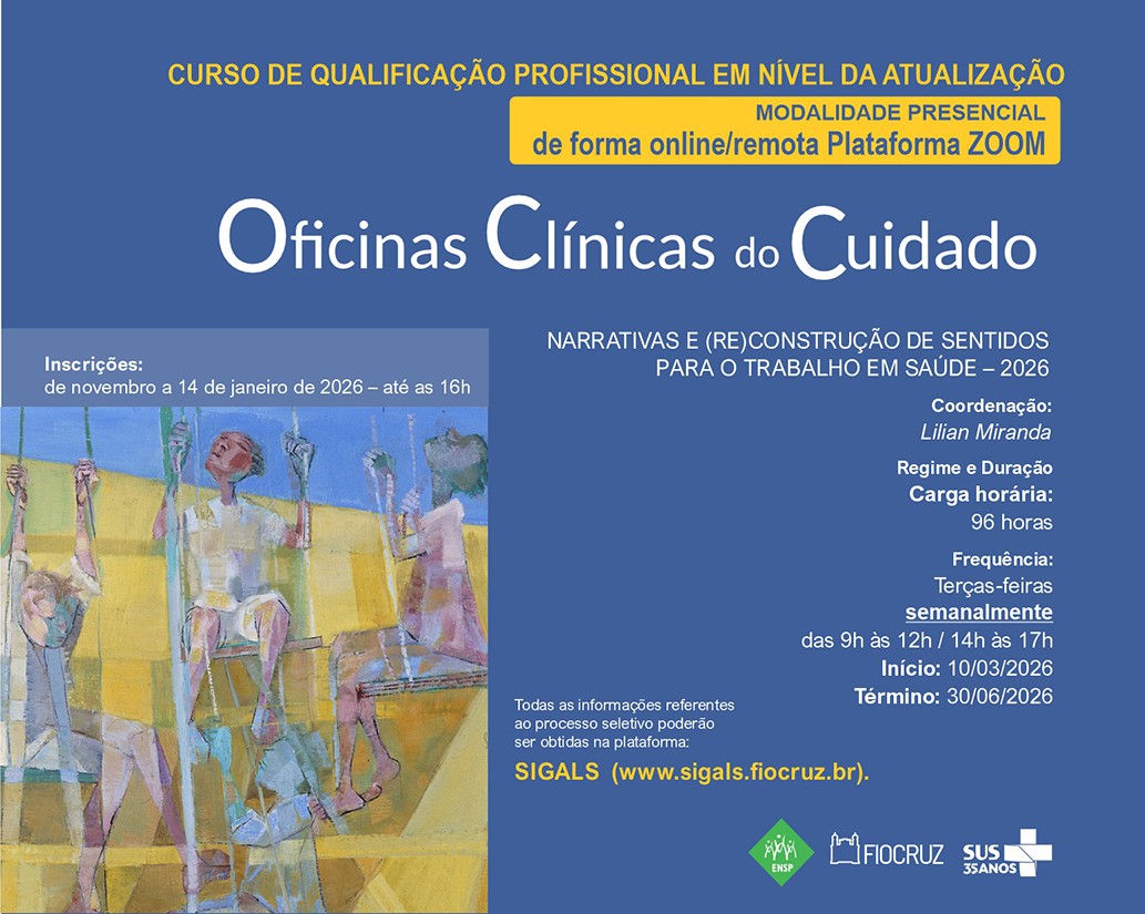 A Escola Nacional de Saúde Pública Sergio Arouca (Ensp/Fiocruz) está com 45 vagas abertas para o curso ‘Oficinas ...