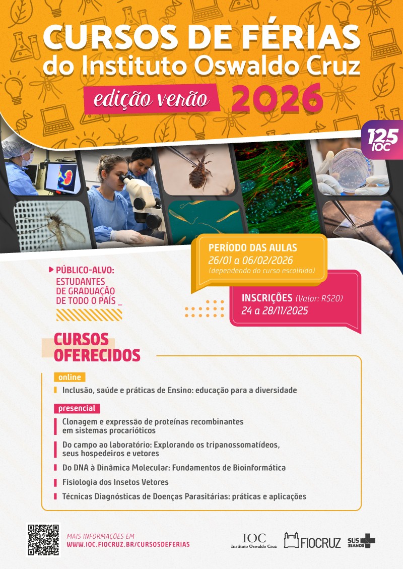 Estudantes de graduação, estão abertas as inscrições para os ‘Cursos de Férias do Instituto Oswaldo Cruz – Temporada ...