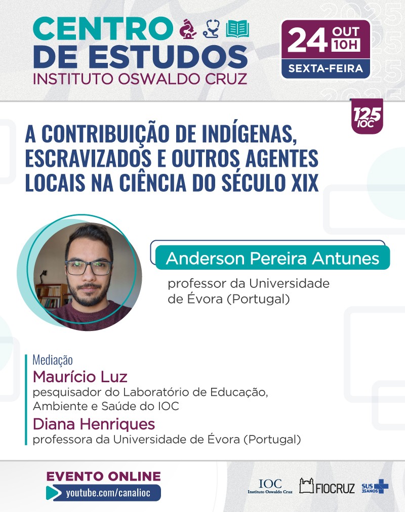 Nesta sexta-feira, 24 de outubro, o Centro de Estudos do Instituto Oswaldo Cruz (IOC/Fiocruz) recebe Anderson Pereira Antunes, professor da Universidade de Évora (Portugal), para a palestra “A contribuição de indígenas, escravizados e outros agentes... Saiba mais