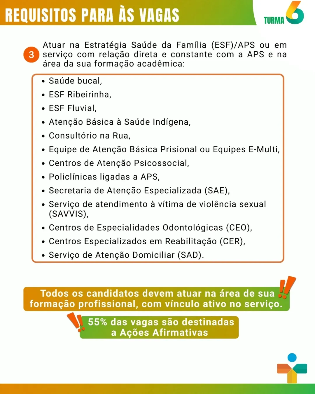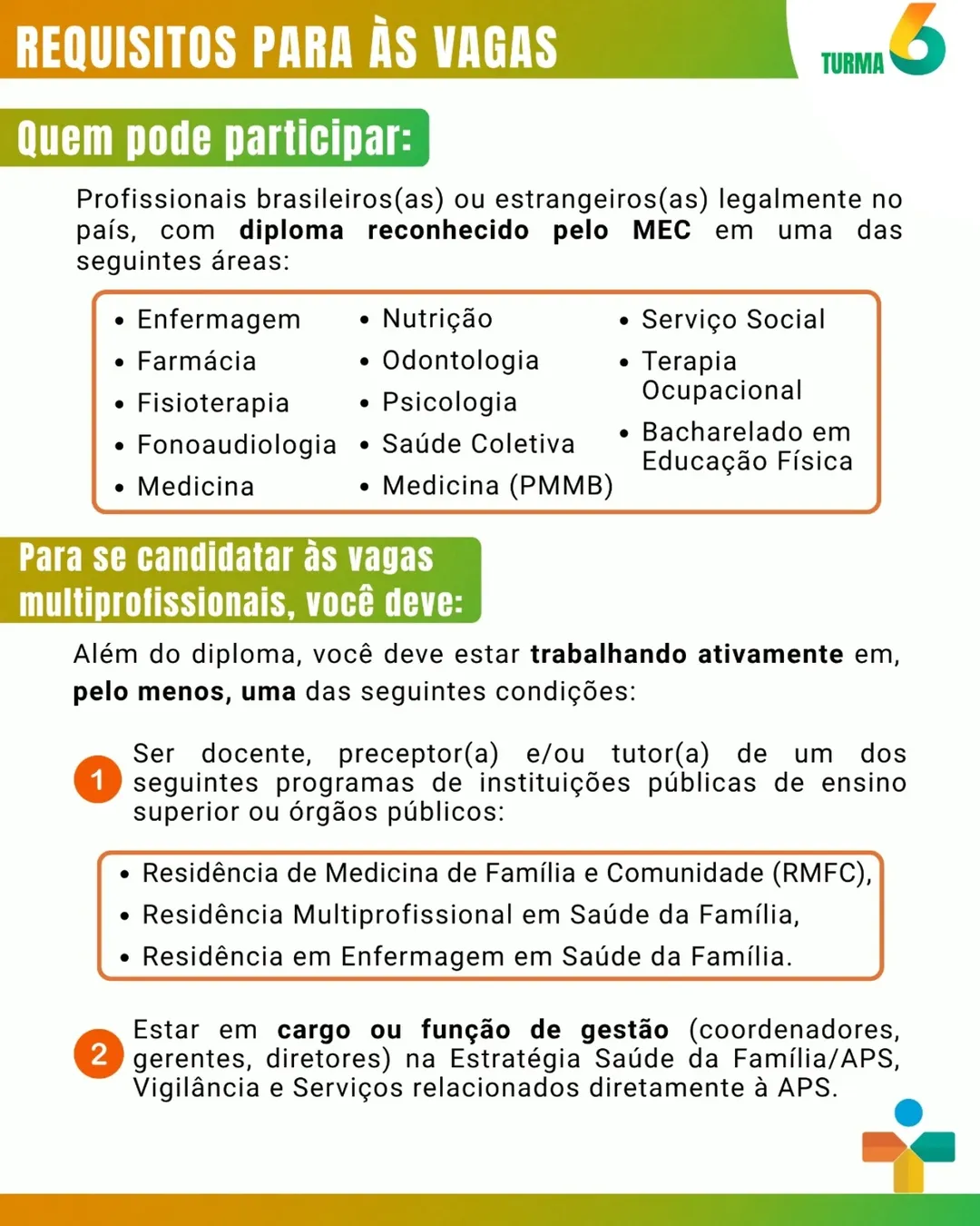 O Mestrado Profissional em Saúde da Família (ProfSaúde) divulgou o lançamento do edital para a sexta turma do programa. A oportunidade engloba profissionais com formação em Enfermagem, Medicina, Medicina (PMMB), Nutrição, Psicologia, Fisioterapia, Farmácia, Odontologia, Fonoaudiologia, Terapia Ocupacional, Serviço Social, Educação Física ou Saúde Coletiva.