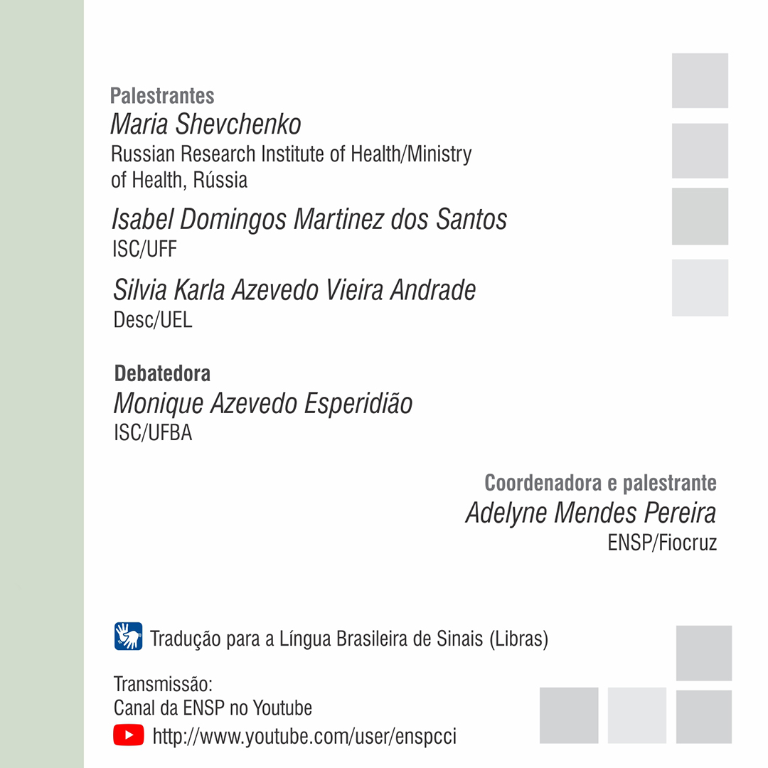 No dia 19 de novembro (quarta-feira), o Centro de Estudos Miguel Murat de Vasconcellos, da Escola Nacional de Saúde Pública Sergio Arouca (Ensp/Fiocruz), vai abordar o tema 'Sistemas de Saúde nos países Brics: desafios e perspectivas'. Será às 14h pelo canal da Escola no YouTube. Todas as palestras e o debate serão traduzidos em tempo real para a Língua Brasileira de Sinais (Libras). Esta edição do CeEnsp é coordenada pela pesquisadora da Ensp/Fiocruz Adelyne Mendes Pereira, que também será uma das palestrantes. Os outros serão Maria Shevchenko, do Instituto de Pesquisa em Saúde da Rússia, vinculado ao Ministério da Saúde russo, Isabel Domingos Martinez dos Santos, do Instituto de Saúde Coletiva da UFF, e Sílvia Karla Azevedo Vieira Andrade, do Departamento de Saúde Coletiva da Universidade Estadual de Londrina (UEL). Como debatedora, o CeEnsp contará com Monique Azevedo Esperidião, do Instituto de Saúde Coletiva da UFBA.