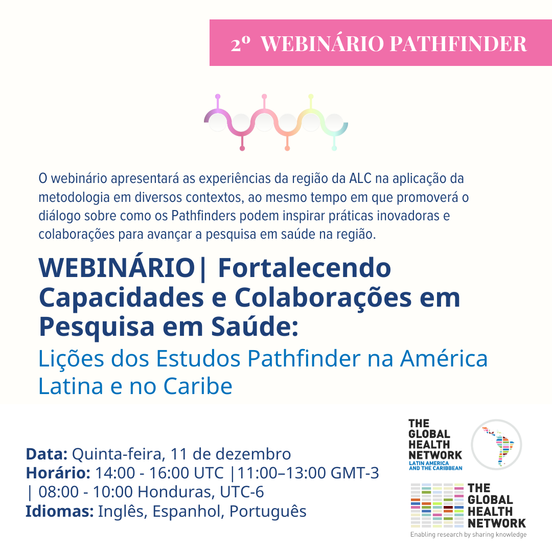 No dia 11 de dezembro de 2025, às 11h (horário de Brasília), será realizado o webinário "Fortalecendo Capacidades e Colaborações em Pesquisa em Saúde: lições dos estudos Pathfinder na América Latina e no Caribe", promovido pela rede The Global ...
